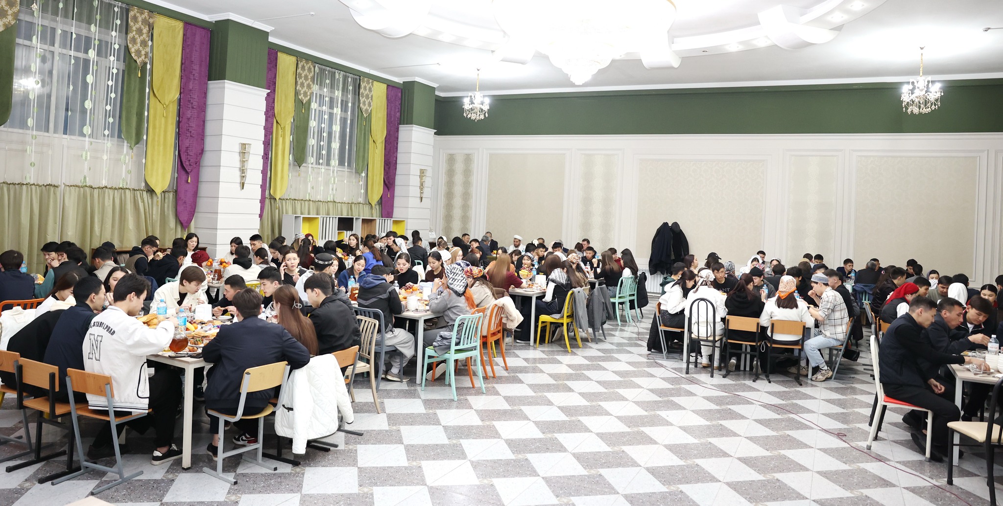 Орталық мешіттің наиб имамы студенттерге уағыз айтып, сауапқа толы қасиетті Рамазан айындағы орасан зор мүмкіндіктер жайлы айтып, Құран бағыштады. Ауыз ашарға қатысқан студенттер күй тартып, өз өнерлерін ортаға салды.
